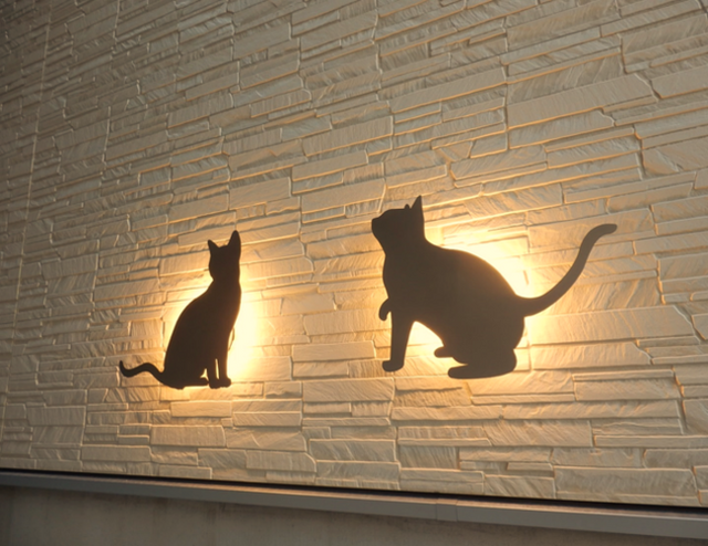 外壁にはネコプランを象徴する、ネコ型ウォールライトがお出迎え