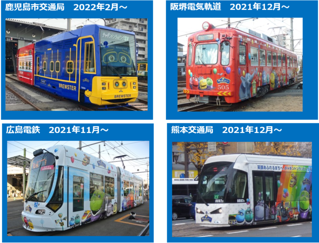 両備グループのまちづくりのテーマにご賛同いただいた全国各地域の鉄道会社(鹿児島市交通局、阪堺電気軌道株式会社、広島電鉄株式会社、熊本市交通局)にご協力いただき、鹿児島市、大阪府、広島県、熊本市で人気鉄道アニメ「チャギントン」のキャラクターデザインラッピング電車が運行しています。