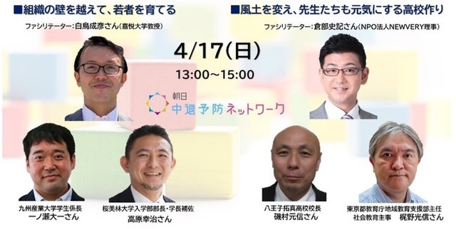 ■対象:学校関係者や「中退予防」と若者の未来づくりに関心を持つ方々。お申し込みは下記URLから。
