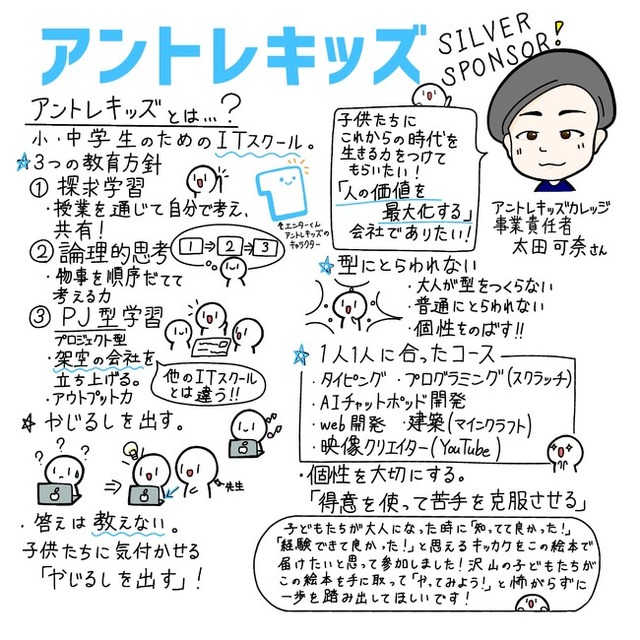シルバースポンサーページのデザインは「中高生向け起業体験型人材プログラム~MANABUYA~」(※3)の卒業生の中学生が作成してくれました。