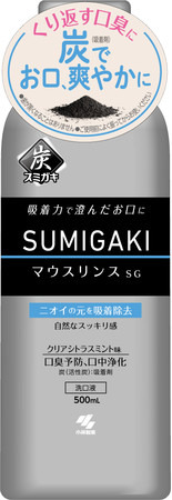 『スミガキ』シリーズのマウスリンスは、ニオイの元を吸着除去するために吸着剤として炭を使用しています。口臭が気になる方に炭配合の黒いマウスリンス「SUMIGAKI/マウスリンスSG」を使っていただきたいです。