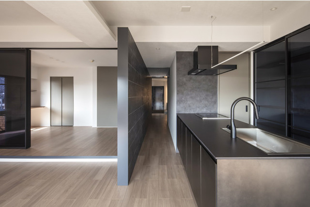 兵庫県の東部に位置する御影エリアは、閑静で緑が多く、文化や歴史・質の高い教育が育まれた街です。今回は、その街で多くの方に愛される築40年のマンションをリノベーションしました。当社のオリジナルキッチンや建具・洗面等を使用し、人を招き入れたくなるような上質な空間を目指しました。角部屋のメリットを最大限に活かし、光をたっぷりと取り入れた、空間の広がりを感じられる物件となっています。シューズクロークやパントリーといった収納スペースは勿論、在宅ワークにぴったりなスタディルームも完備しています。