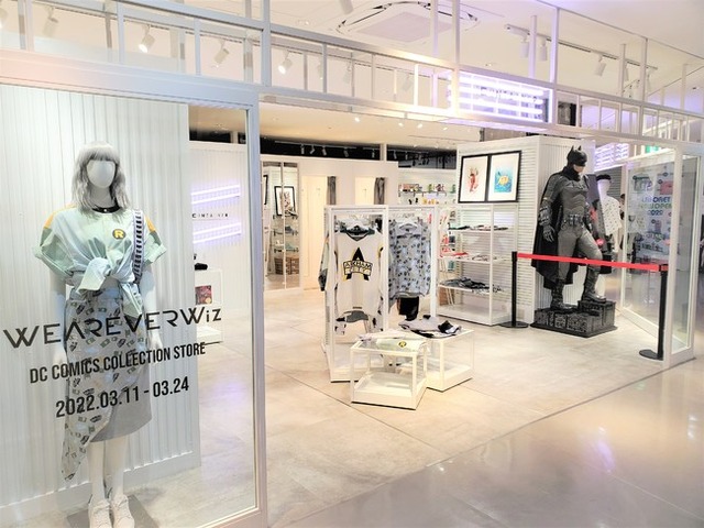 舞台となるのは、常に流行の中心地として君臨する街・原宿のランドマーク「ラフォーレ原宿」。入口には等身大のバットマンが!ベーシックなTシャツ、ユニークなシルエットのトップスやボトムス、最新のシューズコレクションまで「DCコミックス」キャラクターのアイテムが大集結。アイテムの色・ディテールが見やすいホワイト基調のショップ内で、ショッピングを楽しむことができます。