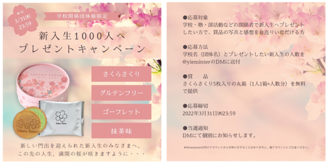 【応募方法】学校名(団体名)とプレゼントしたい新入生の人数を@yieminterのDMに送付
