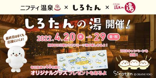 オンラインでもコラボイベントを楽しんでいただくために、本日より、4月29日(金・祝)までを対象として「ニフティ温泉」内でのオンラインイベントも開催いたします。