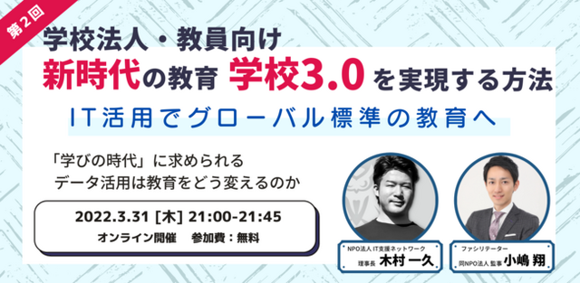 株式会社アウロンパートナーズは、NPO法人IT支援ネットワークの協力のもと、学校教育関連者に向けた方「ICT活用の授業・データ活用の未来についてのセミナー」を開催し、大好評につき第2回の開催が決定しました。