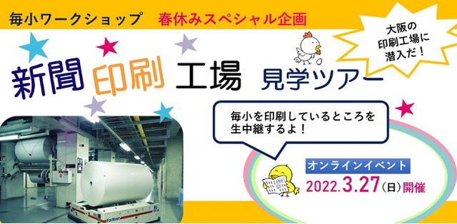また、毎小にカメラを付け、新聞には工場がどう見えるのかを撮影した動画「旅する毎小」も放映します。新聞も、パンフレットやチラシも、工程は基本的に同じ。普段、手にする印刷物がどうやってできるのか。春休み中のお子さまの学びにもつながります!