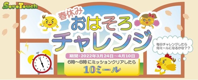 「おはそろチャレンジ」は2020年6月、コロナ禍で自宅自粛が促される中、不規則になってしまう生活リズムを整えたいという保護者の声を受け、少しでも子ども達が楽しく早起きにチャレンジできるようにと考えスタートしたイベントです。コロナ禍との共存が3年目を迎える中、今回は不規則になりがち春休みの生活リズムを整え4月からの新学年に備える目的として開催いたします。