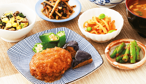 毎日食べても飽きない、和・洋・中のメニューがバラエティ豊かに揃っています。冷凍惣菜セットの他にも、麺類や丼の具などもご用意しています。献立を考えるのが、実は一番大変というお客さまにご支持をいただいています。