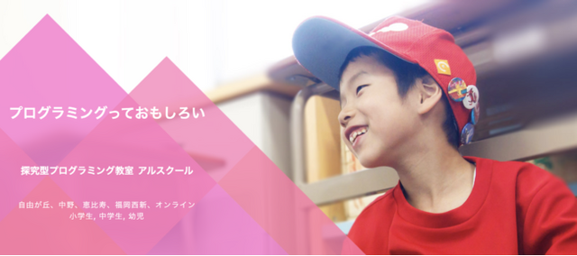 アルスクールは小学生、中学生、幼児(年中、年長)を対象としたプログラミング教室で、これまでに自由が丘校、恵比寿校、中野校、中野TCS校、福岡西新校とオンライン校の計6校を展開してきました。