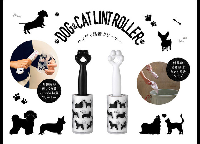 ケースには犬や猫のシルエットプリントが施されており、シンプルで見た目が可愛らしく、出しっぱなしでもおしゃれです。犬猫好きにはたまらない丸みのある肉球型の持ち手もコロコロするたびに癒されます。