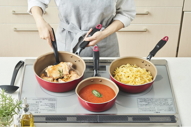 今回発売する「evercookマルチパン」はevercookシリーズで最も深さのあるフライパンです。焼く、炒める、といったフライパンとしての機能はもちろん、煮込む、茹でる、といった鍋としての機能も兼ね備えた、使いやすいサイズとなっています。