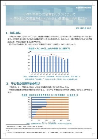 今回は、『小学1年生の交通事故リスクについて~子どもの交通事故防止のために保護者ができること~』を当機構ウェブサイトに公表しましたので、ご案内いたします。