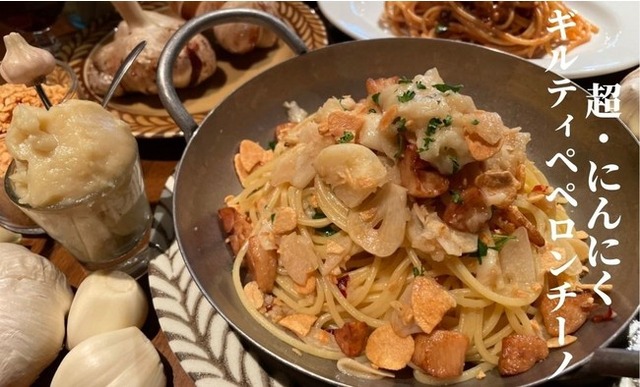 青森県産の最高級にんにくを使用した料理を楽しめる『にんにくバル The Garlic Nakano』では、2022年4月1日(金)より背徳感たっぷりの「超にんにくギルティペペロンチーノ」を新たに販売いたします。また、本メニューの販売を記念して2022年4月1日(金)~同年4月21日(木)の期間限定で、女性のお客様が本メニューを食べ切れたら料金が無料になる「チャレンジキャンペーン」を開催いたします。