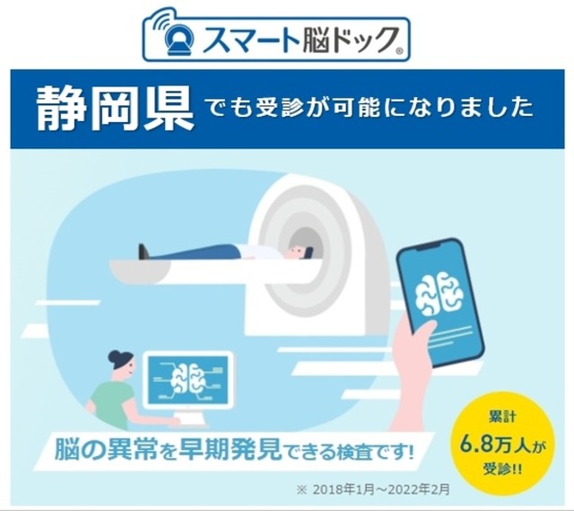 病院やクリニックのDX推進をサポートするスマートスキャン株式会社(本社:東京都中央区、代表取締役:濱野斗百礼、以下、スマートスキャン)は、脳ドックをWEBから簡単に予約、検査は受付からお帰りまで30分の「スマート脳ドック」が静岡県内の4つの医療施設で受診が可能になったことをお知らせいたします。