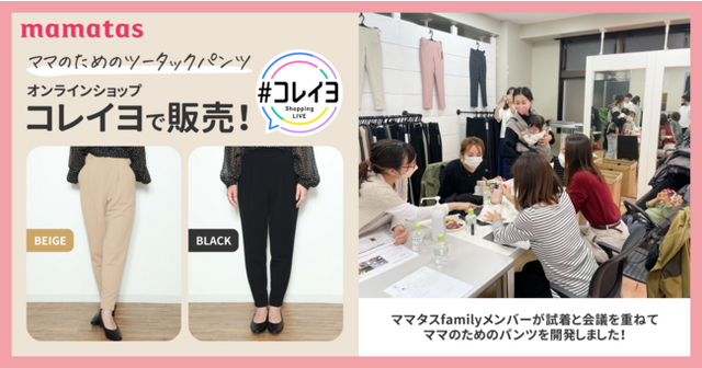 C Channel株式会社(本社:東京都目黒区/代表取締役社長:森川亮)が運営するママ向け動画メディア「mamatas(以下、ママタス)」(総フォロワー数110万以上・https://www.mamatas.net/ )が、創業60年以上の老舗パンツ専門メーカーとコラボレーションしてママのためのツータックパンツを開発。ジュピターショップチャンネル株式会社が運営するショッピングライブ コレイヨのオリジナル商品として、コレイヨのECサイトにて独占販売します。