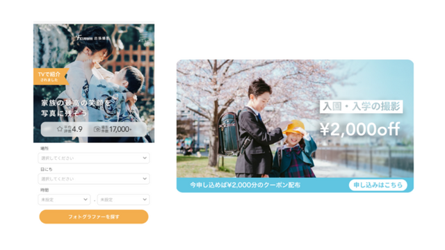 お子様の入園・入学記念の出張撮影を実施の皆様にクーポンコード2,000円分をプレゼント