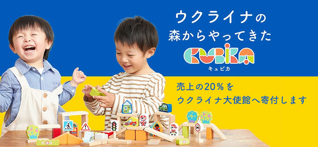 知育玩具メーカーのエデュテでは「ウクライナ支援おひるねアート」のモチーフとなったウクライナの木のおもちゃブランド「CUBIKA(キュビカ)」をご購入いただくと、その売り上げの20%をウクライナ大使館へ寄付する活動を実施しています。