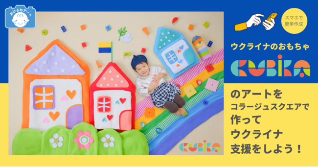「CUBIKA(キュビカ)」の木製玩具をモチーフとし、平和の象徴でもある鳩とオリーブを入れることでウクライナに平和が訪れるよう願いを込め、お子様の可愛い写真が撮れる「ウクライナ支援おひるねアート」を作成しました。