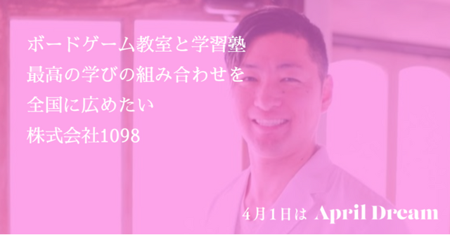 当社は、4月1日を夢を発信する日にしようとするApril Dreamに賛同しています。このプレスリリースは「株式会社1098」の夢です。
