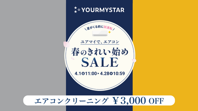 ハウスクリーニング・法人向け清掃や修理・お手入れ等のサービス産業をIT化する日本最大級のプラットフォーム「ユアマイスター」を運営するユアマイスター株式会社(本社:東京都世田谷区、代表取締役社長:星野貴之)は、2022年4月1日(金)から4月28日(木)まで、最大3,000円割引になるエアコンクリーニングをはじめとするハウスクリーニングや、宅配クリーニング、カバンや靴等の修理・カスタマイズサービスをお得にご利用いただける「春のきれい始めSALE」(https://yourmystar.jp/2022-spring-sale/)を開催します。