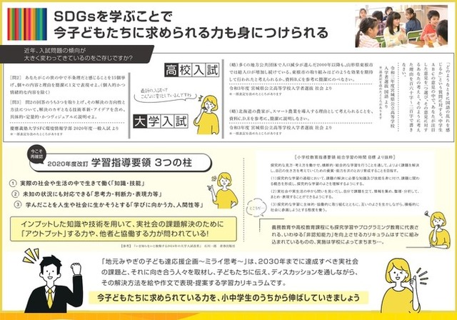 2020年度の新学習指導要領改訂に伴い、『持続可能な社会の創り手となることができるようにすること』『社会に開かれた教育』という表現が盛り込まれ、実際に中学・高校・大学入試においても、実社会の課題解決の姿勢や思考力・表現力が求められるようになっています。