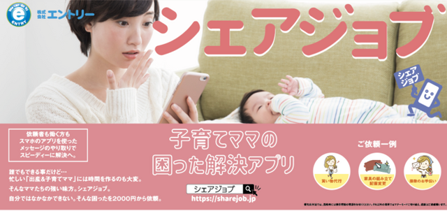 総合人材サービスを手掛ける株式会社エントリーは、人と仕事の“縁”結び(EN)に“挑戦”(TRY)し 続けています。近年、共働きやシングルなどの家庭が増えている中、家事代行をお願いする方が増加。 中でも4月は入園入学の季節でもあることから、幼稚園や保育園グッズの準備が必要です。 また、子どもだけでなく、親にとっても春は様々な節目となり、限られた時間の有効利用が必要です。そんなとき、シェアジョブでは保育園準備に頭を抱えるママをサポートする助っ人をお願いすることが可能。一般的な家事代行では3時間からが多い中、シェアジョブは1日10分から依頼が可能。子 育ての悩みを気軽に解消できるサービスとして今人気を集めています。