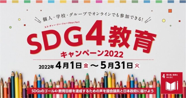 認定NPO法人フリー・ザ・チルドレン・ジャパン(所在地:東京都世田谷区南烏山6-6-5-3F、代表:中島早苗、以下FTCJと略称)は、実行委員として運営している「SDG4教育キャンペーン2022」の子ども・ユースロビイングメンバーを4月1日~4月25日の期間で募集しています。ロビイングメンバーは、6月6日に院内集会・記者会見を実施、7月に教育に関わる省庁を訪問し、キャンペーン参加者の声(ウェブ投票の結果や政策提言など)を国会議員や関係省庁へ届けるロビイング活動を行います。