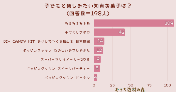 「子どもと楽しみたい知育お菓子は?」とアンケート調査した結果、1位は『ねるねるねるね』でした。
