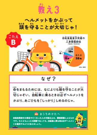 自転車編のドリルの解答ページには、おなじみのうんこ先生の教えとともに、保護者の方に向けたメッセージも掲載。知っているようで意外と知らない交通ルールを親子で一緒に学ぶことができます。
