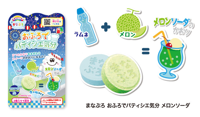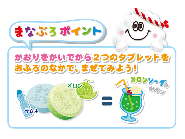夏らしい、ラムネ・メロンの香りがするバスタブレット。2つの香りを混ぜたらどんな香りになるかな?