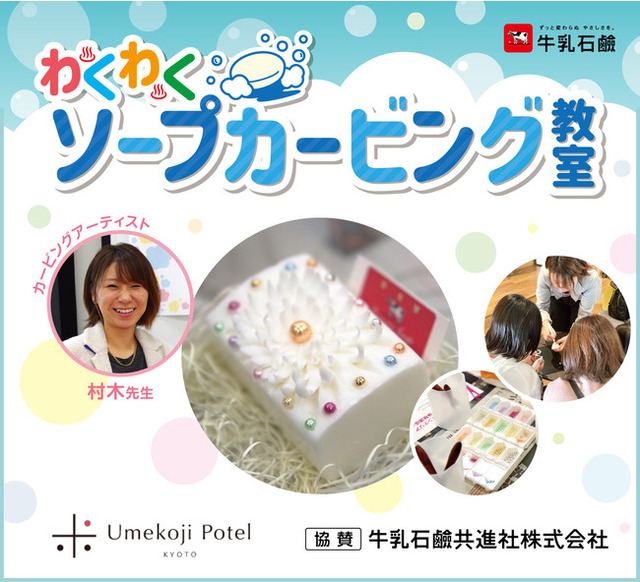 株式会社JR西日本ホロニック(京都市下京区/代表取締役 長田一郎)が運営するUmekoji Potel KYOTO(梅小路ポテル京都)は、客室オリジナルアメニティや梅小路銭湯ぽて湯、「銭湯ギャラリー」イベント等これまでコラボレーションしてきた牛乳石鹸共進社株式会社(大阪府)と共に4月16日(土)と17日(日)の2日間ソープカービング体験を開催いたします。