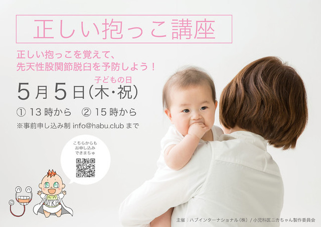 ・講座概要:先天性股関節脱臼の予防のための「正しい抱っこのしかた」を実践と知識の両面からお伝えします。