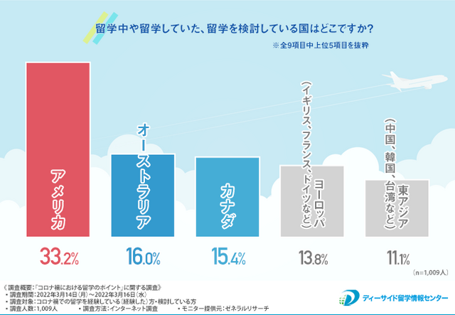 そこで今回、海外留学支援事業を行っているディーサイド留学情報センター(https://d-sidejp.com)は、コロナ禍での留学を経験している(経験した)方・検討している方を対象に、「コロナ禍における留学のポイント」に関する調査を実施しました。
