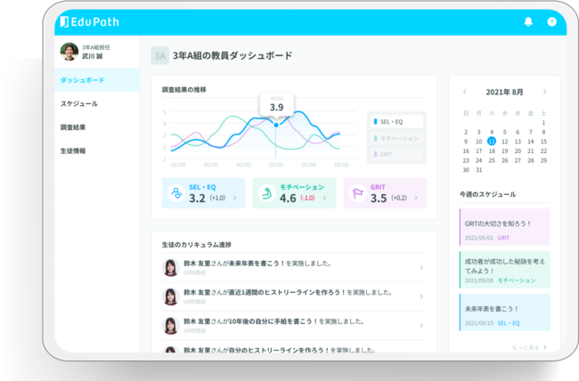 Edv Futureの提供する「Edv Path」は、生徒の生きる力(非認知能力)をアセスメントによって測定し、データとして蓄積することで、生徒の成長支援を行い、最適な探究カリキュラムとコーチングを提案するアカデミックアドバイスソフトウェアです。