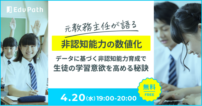 「EdTech導入補助金2022」に伴い、2022年4月20日(水)にオンラインセミナー「【無料】”非認知能力の数値化”データに基づく非認知能力育成で生徒の学習意欲を高める秘訣」を実施いたします。