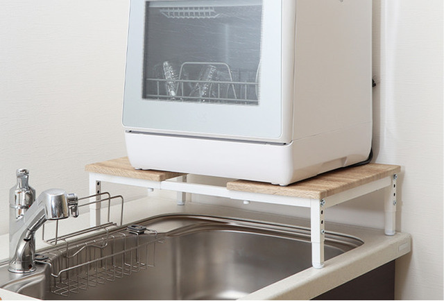 天板がスライドで伸縮できるためご家庭のキッチンや置く場所に合わせて調節が可能です。また、大きめの食洗機にもフレキシブルに対応できます。