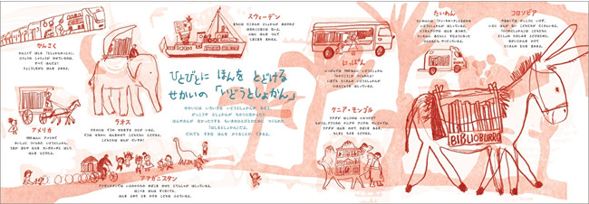 また、カバーを裏返すと、世界中で実際に活躍している移動図書館を紹介するポスターに。異文化に触れることで、世界への興味が広がります。