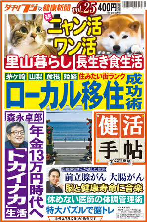 また、犬や猫との長生き食生活、里山暮らしに注目した「続ニャン活ワン活」に、いしかわじゅんさんの愛猫寄稿。森永卓郎さんによる年金13万円時代の「トカイナカ」生活や前立腺がんの最新治療、脳トレパズル、「GOTO銭湯」など情報満載です。