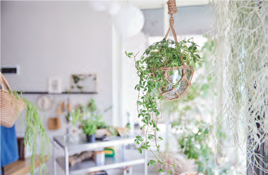 くねくねしたユニークな樹形や、ボリュームがある壁掛け鉢にも最適な植物を選びます。家族で観察してコミュニケ―ションにもつながります。