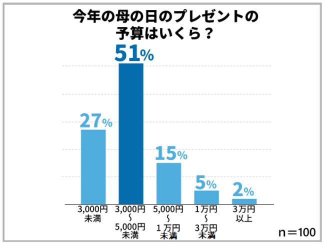●母の日のプレゼントの予算は3,000円~5,000円未満の方が半数以上