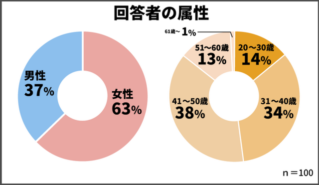 プレゼントを贈る側の立場の方100人に「母の日のプレゼントに関するアンケート」にご協力を頂きました。20歳から61歳以上の男女、属性は以下のとおりです。