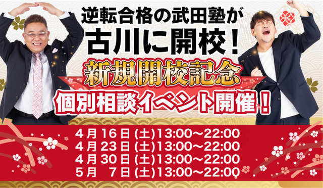 武田塾古川校の開校を記念して、古川校では個別相談イベントを実施いたします。