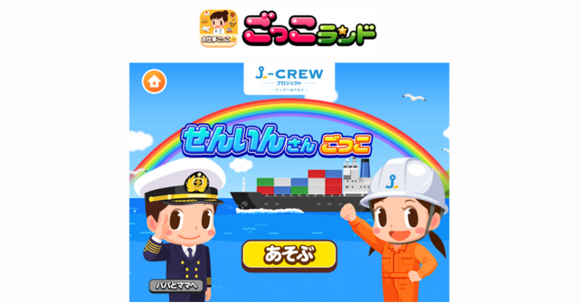 本ゲームを協賛する「J-CREWプロジェクト ~やっぱり海が好き~」は、船や船員に関する様々な情報をわかりやすく伝え、船員のお仕事を身近に感じてもらうことを目指し活動しています。航海士や機関士の仕事を知るきっかけになればという想いから、『ごっこランド』への出店が実現しました。