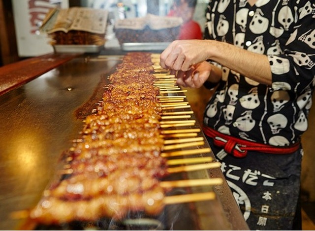 ・噛むほどうまい!香ばしくてモチモチ、博多名物“とり皮”。よく動くおいしい鶏の首まわりの皮だけを、6日間焼いて、漬けてを繰り返して作られる深い味わいをお楽しみください。