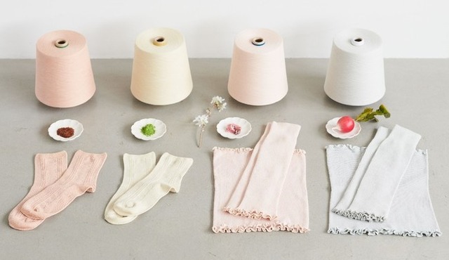 フードテキスタイルとは、大量生産、大量消費の時代の中で廃棄されてしまう食品から、色素を抽出し染色に再活用した「フードロス」削減にアプローチする糸や生地です。今回の新作は、抹茶、ルイボス、さくら、赤カブの4種類の食品を再活用。春夏らしいパステルカラーで、おうち時間の気分も上げてくれる爽やかなカラーが抽出できました。