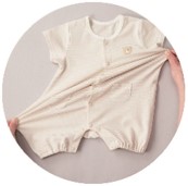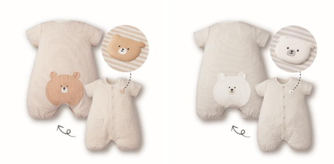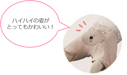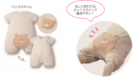 赤ちゃんが寝がえりをしたり、ハイハイ・たっちする姿に成長を感じる方も多いのではないでしょうか。そんなかわいい成長の瞬間に、さらにかわいさをプラスしてくれるよう、おしりにワンポイントがあるプレオールをつくりました。