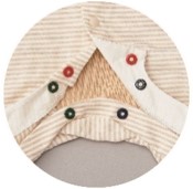 また、赤ちゃんが快適に過ごせるよう、本体には吸水速乾素材や伸縮性のある素材を使用しています。ママ・パパなど誰でもお世話がしやすい工夫もあり、機能的な特長も備えています。