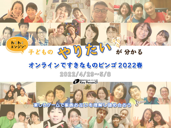 キーパーソン21が認定したサポーターによるゲームを通して、楽しみながら参加者親子の対話を促し、子どもは自分の「わくわくすること」を見つけ、親は子どもの何を応援すればよいのかがわかるプログラム。キーパーソン21が開発し2003年から開始し、学校や家庭において、これまでの延べ53,266人が参加しています。今回はコロナ禍を受けて新たに開発したこのプログラムのオンライン版を開催します。