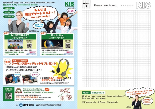 東日本電信電話株式会社 神奈川事業部(執行役員 神奈川事業部長:中西 裕信、以下「NTT東日本」)は、株式会社キティクラブ(代表取締役社長:斉藤 和樹、以下「キティインターナショナルスクール」)が「オンライン」「eスポーツ」を活用した幼児・子ども向けの新たな英会話・英語教育サービスを2022年4月から開始する支援をしてます。キティインターナショナルスクールは本事業開始にあたり、『ICT&プログラム専門棟・二子玉川キャンパスWEST』を東京都世田谷区に新設しました。幼児専門ICT&プログラム専門キャンパスを拠点とし、海外姉妹校や自治体と連携した多彩な教育プログラムを通じて、更なる世界標準の最先端学習の実践を目指します。